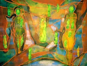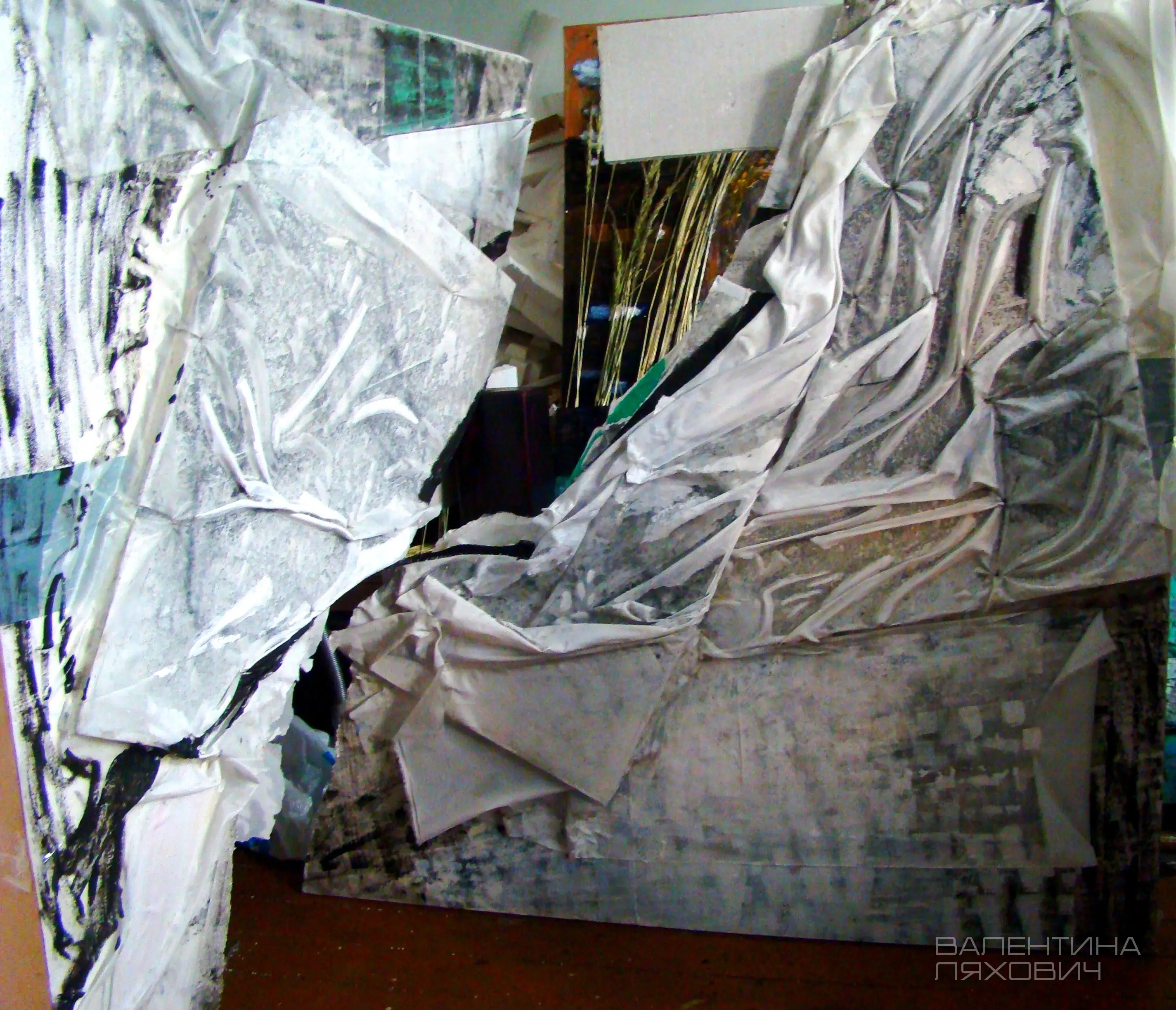 Вариация. 2014 г. 326х244 см. бум., текстиль, акв., акр.