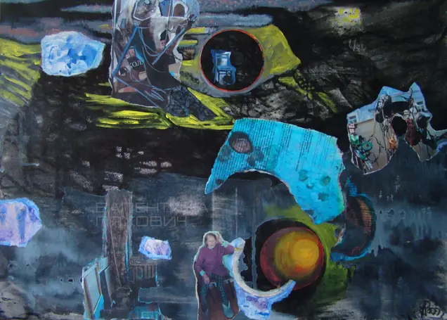 2009г.,бум., акв, акр., коллаж.